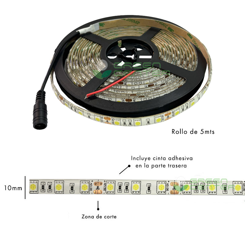 • Corte: Cada 5 cms (3 LEDs)