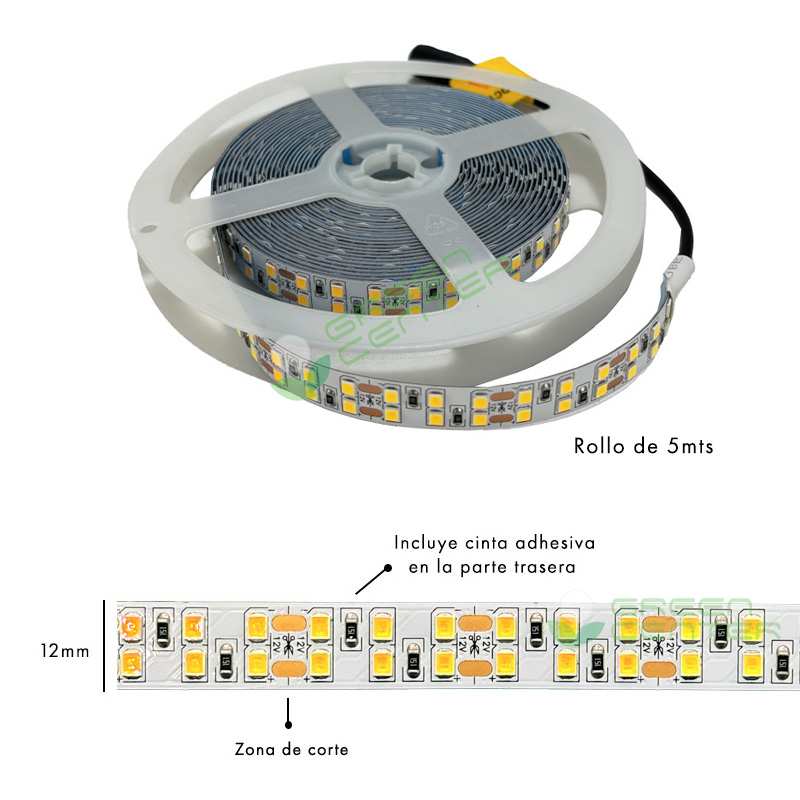 Cinta LED 2835 doble de 12V con protección IP30, ideal para iluminación decorativa en interiores. Su diseño flexible facilita la instalación en casi cualquier superficie. Además, puede ser cortada y reconectada según la necesidad del espacio, brindando máxima versatilidad para tus ideas creativas.