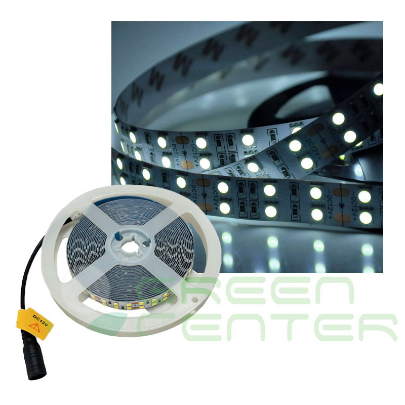 Cinta LED 2835 doble de 12V con protección IP30, ideal para iluminación decorativa en interiores. Su diseño flexible facilita la instalación en casi cualquier superficie. Además, puede ser cortada y reconectada según la necesidad del espacio, brindando máxima versatilidad para tus ideas creativas.