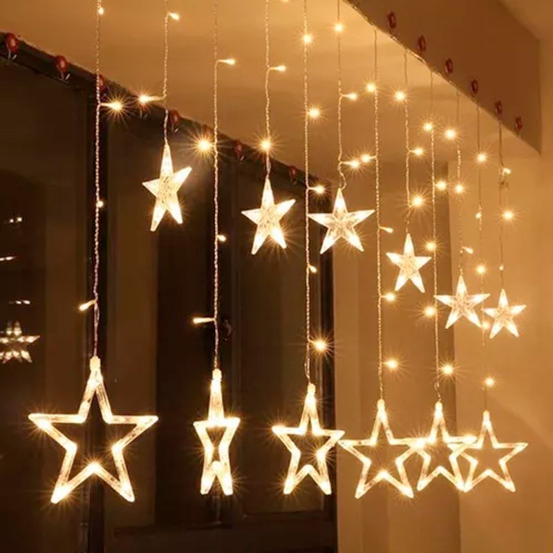 Cortina LED 12 Estrellas 220x75cm – Luz Cálida 3000K | Conexión en Serie y Fácil Instalación DEEST00030