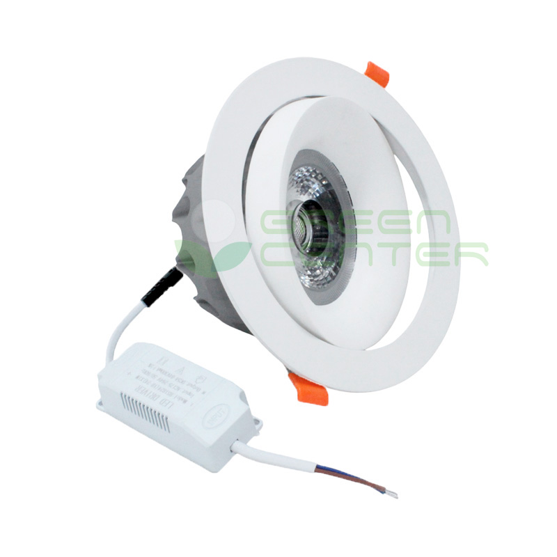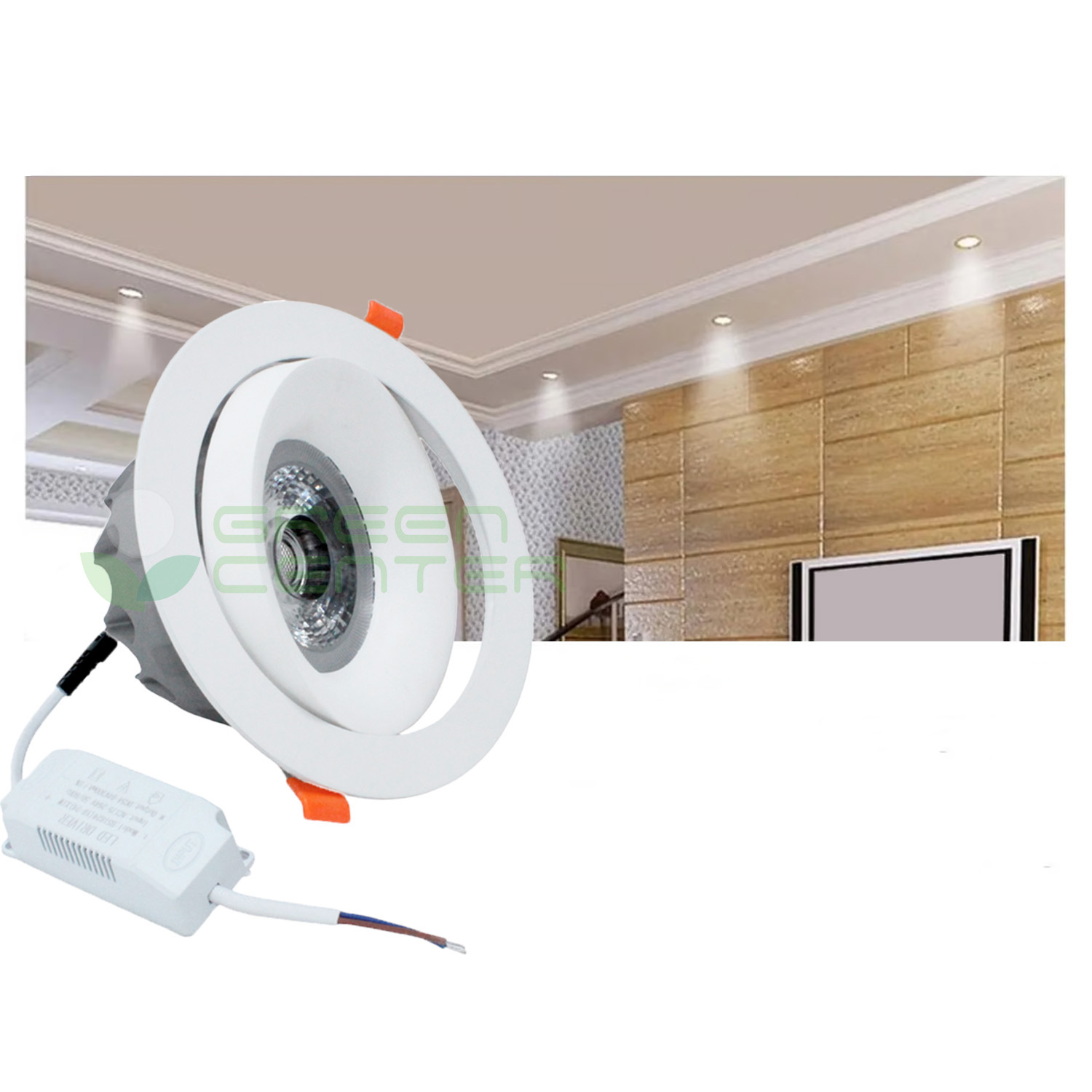 Foco LED embutido con tecnología COB y ángulo dirigible, diseñado para ofrecer una iluminación eficiente y focalizada. Su borde blanco combina con estilos modernos y minimalistas, ideal para vitrinas, pasillos, tiendas o locales comerciales. Cuenta con transformador externo de fácil conexión, lo que facilita su instalación y mantenimiento.