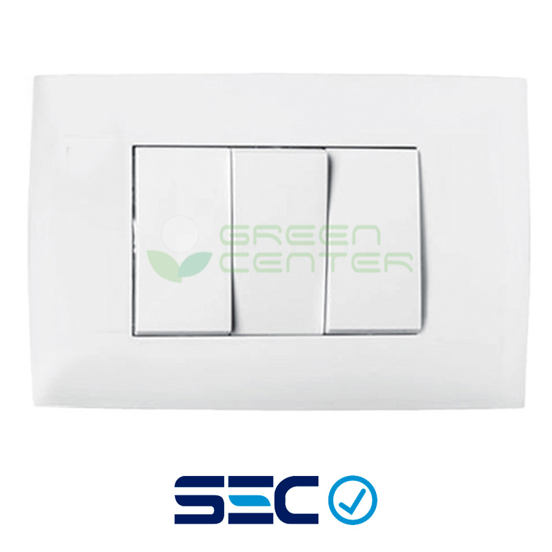 Interruptor triple 9/32 en color blanco, diseñado para ofrecer una solución práctica y segura en el control de dos circuitos eléctricos desde un solo punto. Con una capacidad de 16A y 250V, soporta hasta 2200W, siendo ideal para su uso diario en hogares, oficinas y espacios interiores. Además, cuenta con certificación SEC, lo que garantiza su calidad y seguridad.