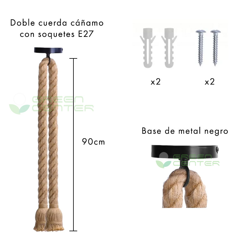 Aporta carácter y calidez a tus espacios con esta elegante lámpara colgante de estilo vintage. Su diseño rústico con doble cuerda de cáñamo natural y soquete E27 la convierte en la opción perfecta para ambientes acogedores, únicos y con personalidad. Ideal para salas, comedores, cafeterías o cualquier rincón que desees transformar con un toque distintivo.