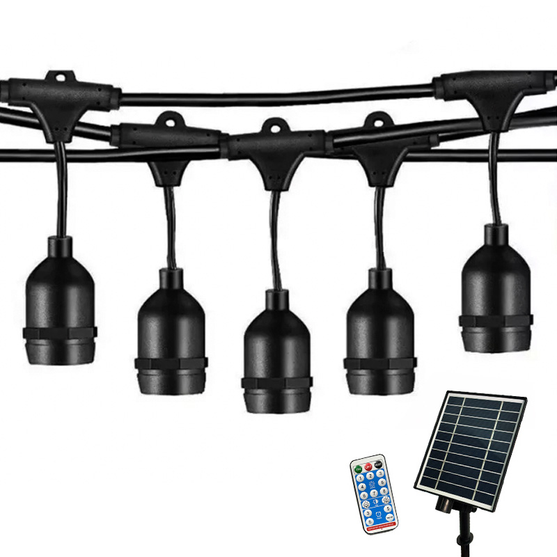 Guirnalda Solar LED para Exterior 10m – Soquete Colgante para 10 Ampolletas E27 (No Incluidas) DEMQSA01000