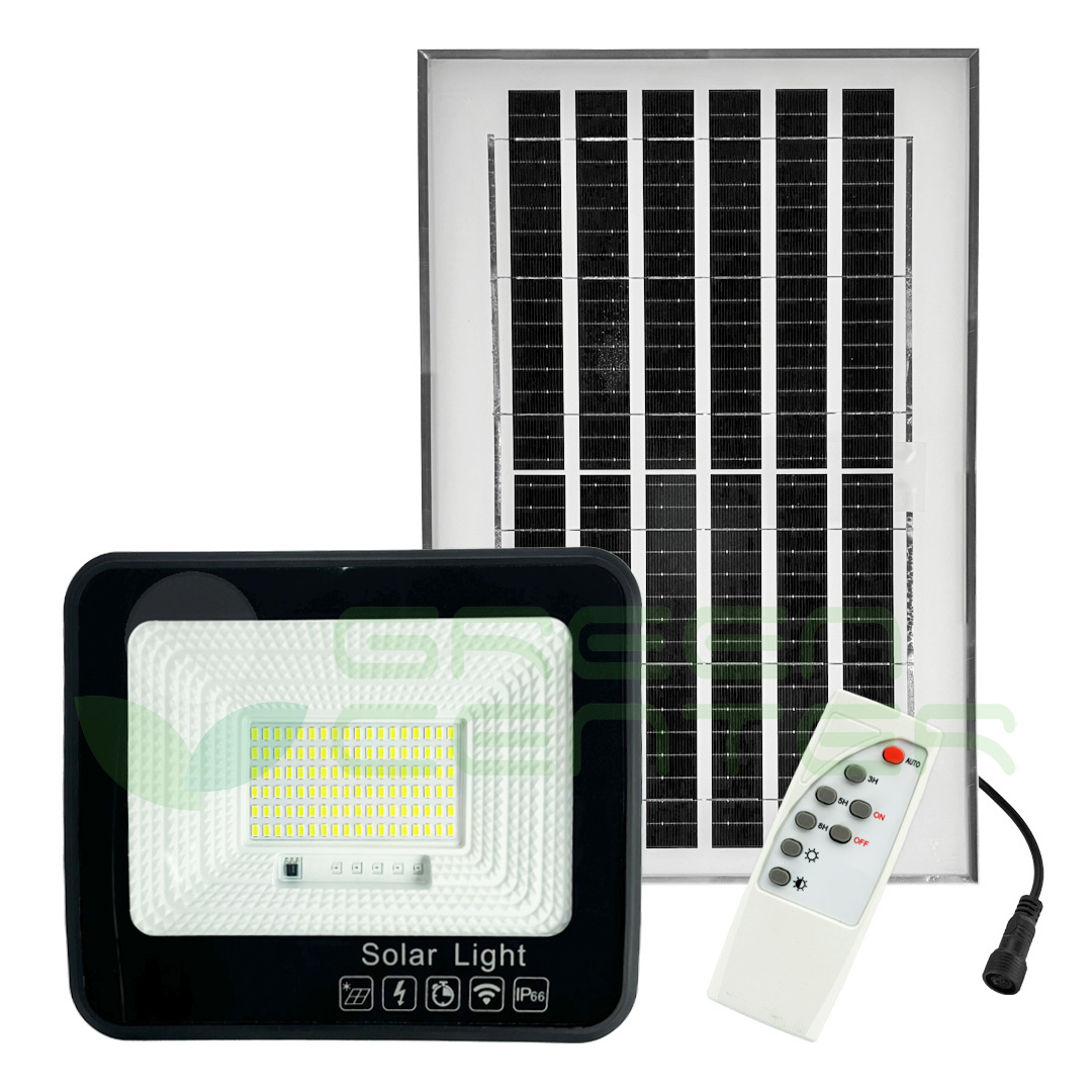 Ilumina tus espacios exteriores con total autonomía gracias a este proyector solar LED de 50W con control remoto incluido. Su diseño todo-en-uno integra panel solar, batería recargable y proyector multichip de alto rendimiento en una sola unidad, facilitando la instalación sin necesidad de cableado ni conexión eléctrica. El control remoto permite encendido y apagado manual, así como activar el modo automático para funcionamiento durante la noche. También ofrece opciones de temporizador, brindando flexibilidad de uso según cada necesidad. Ideal para patios, jardines, entradas de vehículos, zonas rurales o cualquier lugar con acceso limitado al tendido eléctrico, este proyector combina eficiencia, durabilidad y comodidad operativa.